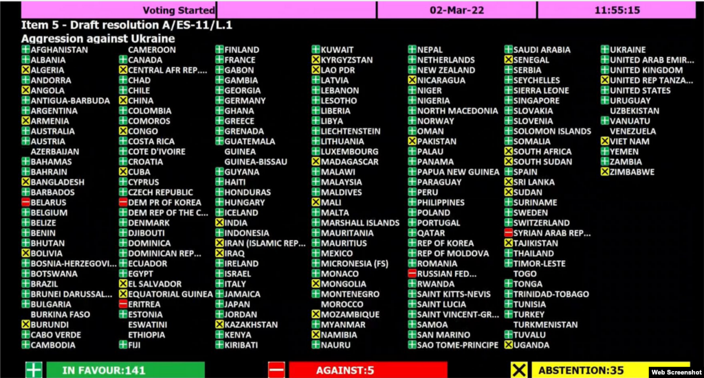 Resultados de las votaciones en ONU sobre el conflicto entre Rusia y Ucrania