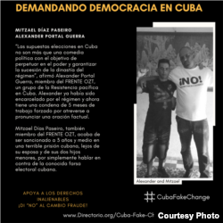 Los activistas Alexander Portal Guerra y Mitzael Diaz Paseiro, del Frente de Resistencia Cívica Orlado Zapata Tamayo, juzgados y sancionados por desacato y peligrosidad predelictiva, fueron trasladados a cárceles de mayor rigor.