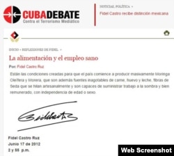“Están las condiciones creadas para que el país comience a producir masivamente Moringa Oleífera y Morera, que son además fuentes inagotables de carne, huevo y leche, (y) fibras de Seda que se hilan artesanalmente”, escribió Fidel Castro en el texto divulgado en la web oficial Cubadebate.