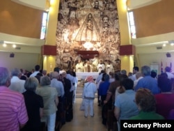Yo creo que el cambio está en las manos de los cubanos. Lo que el pueblo cubano quiera para su futuro va a ser lo que se esfuerce en conseguir, ¿verdad? Hay dentro de Cuba personas que van a seguir siendo la conciencia crítica en medio del pueblo. Hay personas aquí en el exilio que, ocurran los cambios que puedan ocurrir en los próximos tiempos, años, van a continuar siendo esa conciencia crítica, van a seguir siendo profetas de la esperanza de un futuro mejor para Cuba. Yo creo que son cuestiones de principios y, yo, como sacerdote, pues soy una persona de fe y de esperanza y estas situaciones no nos abaten a las personas de fe, ni nos frustran, al contrario. Dios es Dios de la Historia. Dios conoce todas las, vamos a decir… las ramificaciones que tienen las situaciones que nosotros, los seres humanos, las vemos. Él entiende las situaciones que, nosotros los humanos, las vemos con nuestra mirada limitada. Dios conoce toda la Historia y nosotros ponemos en sus manos el futuro y seguimos rezando, eso sí, seguimos rezando. En la Ermita de la Caridad, ocurran los cambios o no ocurran, seguimos rezando. En la Ermita de la Caridad, como desde el primer día en que se inauguró y se bendijo este templo, para que los cubanos sean realmente libres, con democracia, con justicia, y con oportunidades.