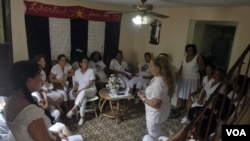 Pollán no tenía experiencia en hacer campañas. Ella era sólo un ama de casa, una maestra, la madre de Laurita: alguien que amaba la literatura y había enseñado a leer a los campesinos en los primeros años de la revolución. Nunca había intentado nada más atrevido que eso. Rubia, llenita, de baja estatura, no estaba configurada para ser arrastrada por la policía. Lo único que quería era ver de nuevo a Héctor, y a los demás. El grupo se reunía todos los domingos en la iglesia de Santa Rita de Miramar, el distrito más exclusivo de La Habana, para rezar el rosario, oír misa, y luego caminar en silencio diez cuadras por la Quinta Avenida, entre los canteros y bajo las palmas. Vestían de blanco, el color símbolo de la pureza, y portaban gladiolos, uno cada una.